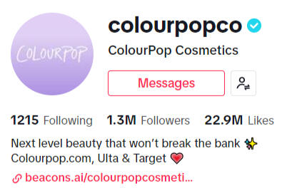 Through directing creative content, and working with the trends and social landscape of TikTok I drove ColourPop's TikTok following from 700k to 1.3M in just over two years.
